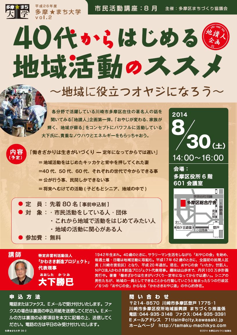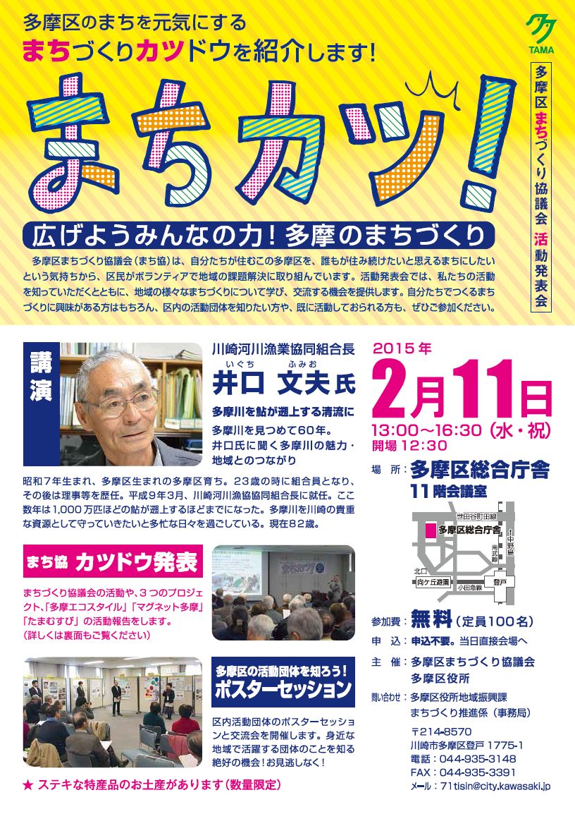 平成24年度 多摩★まちCafe 「カフェ」はじめました Tweet 関連チラシ: 平成24年度 多摩★まち大学 視察研修会「柏の葉の先進的なまちづくりの取組みを見る」 平成24年度 多摩★まち大学 『地域の活動を元気にする!活動を自立させるコツ」 平成24年度 多摩★まちCafe テーマ「こども」 平成26年度 まちカツ! 「広げようみんなの力!多摩のまちづくり」 平成26年度 多摩★まち大学「40代からはじめる地域活動のススメ」