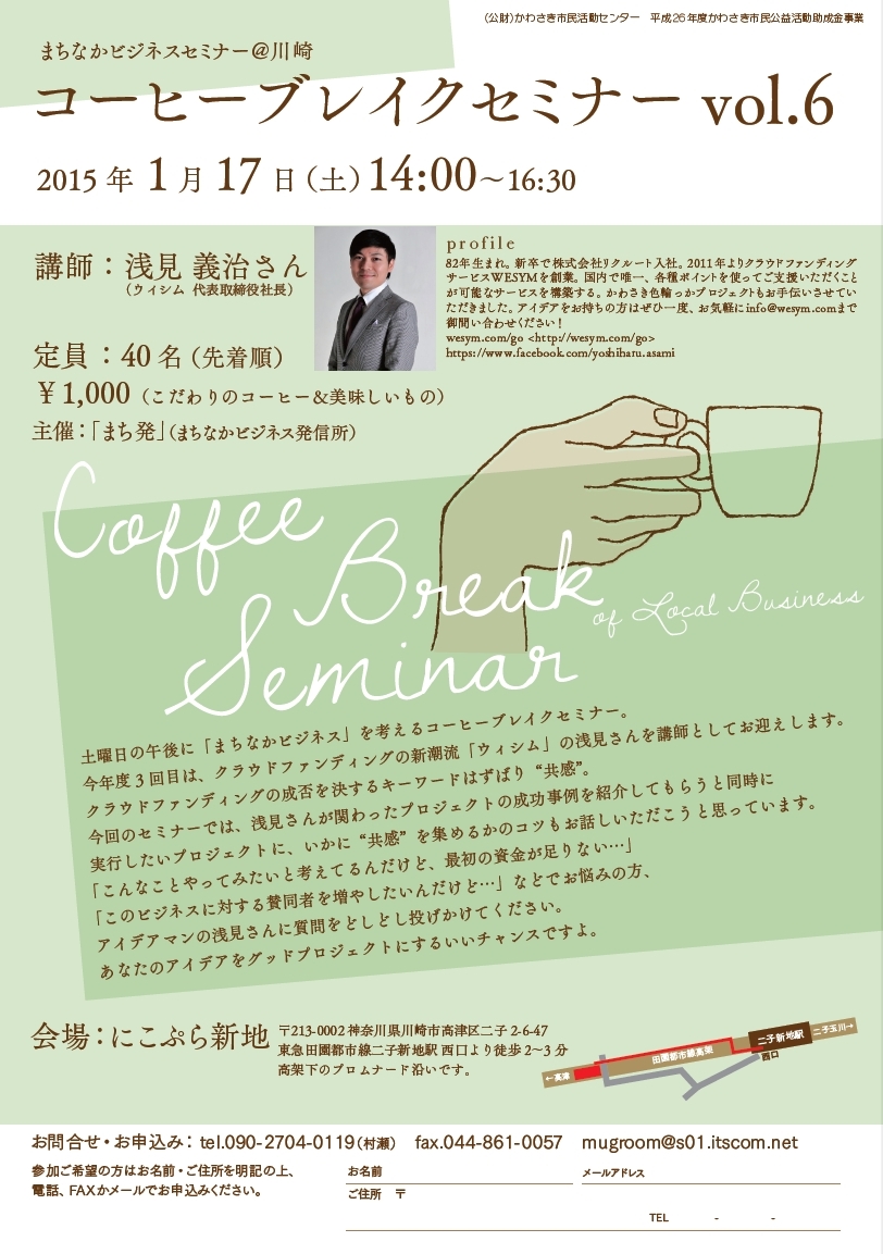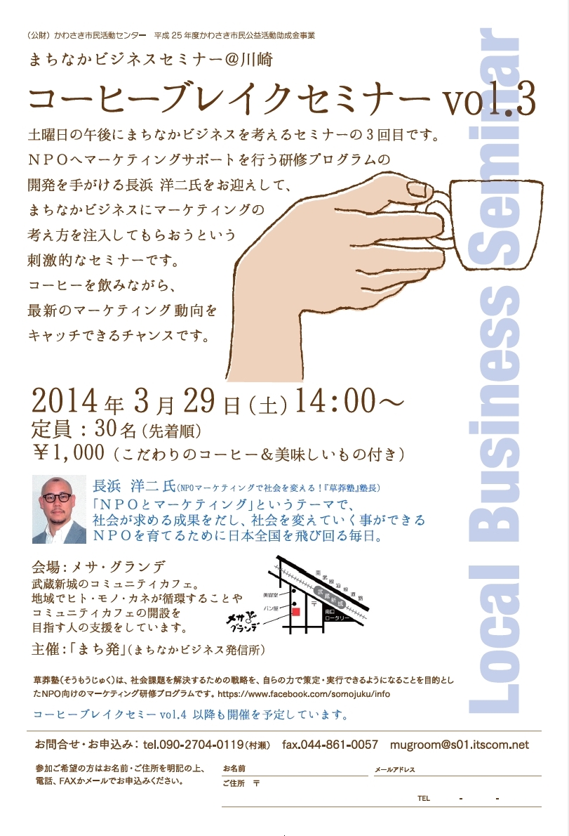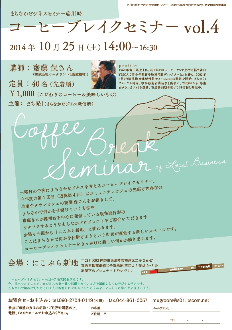 コーヒーブレイクセミナーVol.5 Tweet 関連チラシ: コーヒーブレイクセミナーVol.3 コーヒーブレイクセミナーVol.4 コーヒーブレイクセミナーVol.6 まめな人生通信No.26 まめな人生通信No.27